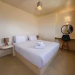 Všechny pokoje v Eolithos Exclusive Suites mají vnitřní dvorek, zvukotěsná okna a soukromý sejf, a také samostatnou toaletu a sprchu. V některých místnostech se objevují pohledy na hory.